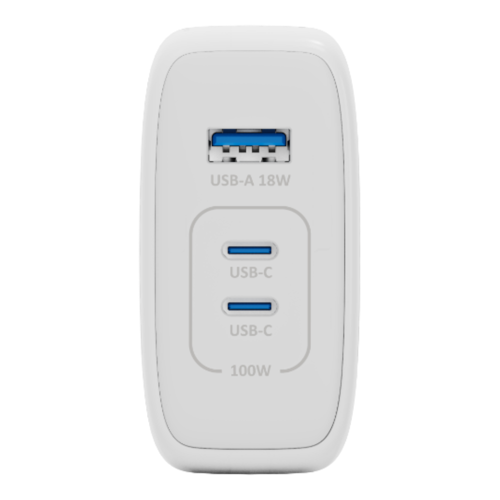 - Avec 2 ports USB-C offrant une puissance totale de 100 W et un port USB-A 18 W