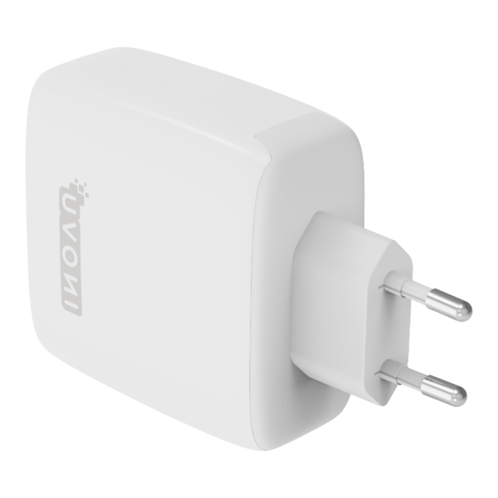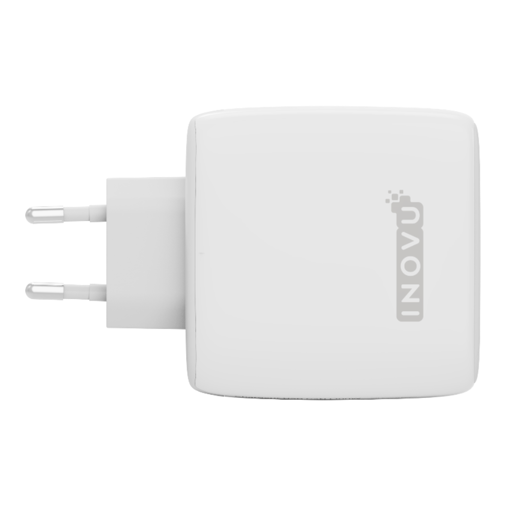 Rechargez efficacement votre smartphone et votre tablette grâce à ce chargeur mural INOVU 100 W USB-C PD GaN. Très performant, il a été conçu à partir de nitrure de gallium (GaN) pour vous faire bénéficier d’une charge extrêmement rapide et toujours plus sûre. Doté de deux ports USB-C Power Delivery délivrant une puissance de sortie totale de 100 W et d’un port USB-A de 18 W, il peut alimenter efficacement n’importe quel smartphone, tablette ou console de jeu vidéo portable équipée d’un port USB-C.